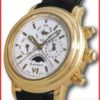 Zur Vervollkommnung dieser unverwechselbaren Luxusuhr setzt das Louisiana-Krokodilleder schwarz Armband eine perfekte Akzentuierung des Gehäuses mit Gelbgold 18Kt., dreiteilig, Krone mit Drücker für die Schleppzeigerfunktion, Schieber für die Repetition am Gehäuserand, Saphirglas, Boden mit Saphirglas-Sichtfenster. Die Funktionen dieser Luxusuhr umfassen Minutenrepetition, Monat, Tourbillon, Wochentag, Stunden, Minuten, ewiger Kalender (Datum, Wochentag, Monat, Schaltjahr, Mondphasen), Chronograph mit Schleppzeiger, Tourbillon, Minutenrepetition.