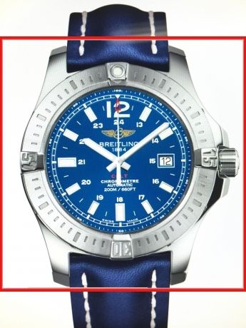 Das Zifferblatt hat Arabisch Zahlen, Farbe Blau, Indexe und Zeiger mit superluminova, Stabindexe rhodinierte und die Luenette ist Edelstahl, Einseitig drehbar mit 60 min einteilung, Gebürstet, Poliert. Diese Herrenuhr kommt mit einem 25 Rubine, Breitling 17, Gangreserve 40 Std., Halbschwingungen A/h 28800, Mechanisch mit automatischem Aufzug, Offizieller Chronometer mit Prüfzeugnis C.O.S.C Werk. Das Kalbsleder Armband vervollständigt das Bild dieser Herren Uhr. Die Funktionen dieser Luxus Herren Uhr umfassen 24 Std. Anzeige, Datum, Stunden Minute, Zentrale Sekunde. Mehr Herren Uhren finden Sie in der Herren Kategorie.