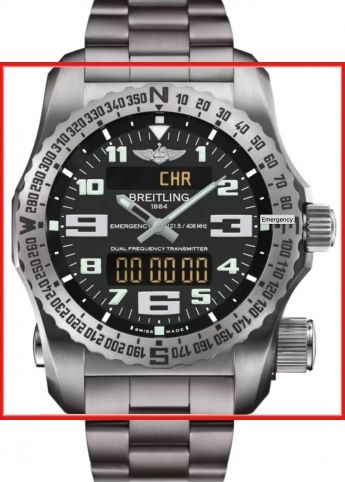 Das Zifferblatt hat Arabisch Zahlen, Farbe Schwarz, Indexe und Zeiger mit superluminova und die Luenette ist 360 ° Navigations Lynette, Titan. Diese Herrenuhr kommt mit einem Breitling 76 SuperQuartz, Quarz Werk. Das Titan Gliederband Armband vervollständigt das Bild dieser Herren Uhr. Die Funktionen dieser Luxus Herren Uhr umfassen 2. Zeitzone, Alarm, AM/PM-Anzeige, Chronographe, Dualfrequenz-Notsignal 121.5 MHz und 406 MHz, Ganganzeige, Jahreskalender, Minutenrepetition, Monat, Stunden Minute, Timer, Vierjahreskalender, Wecker. Mehr Herren Uhren finden Sie in der Herren Kategorie.
