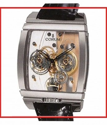 Das Zifferblatt hat und die Luenette ist . Das Werk ist Gangreserve Anzeige, Halbschwingungen A/h 18000, Kaliber, Lagersteine, Mechanisch Handaufzug, Tourbillon, Corum Kaliber CO 382 (Basis La Joux-Perret 7951), 16 Steine, Minutentourbillon, sämtliche Brücken und Kloben aus Saphierglase, 90 h Gangreserve.
