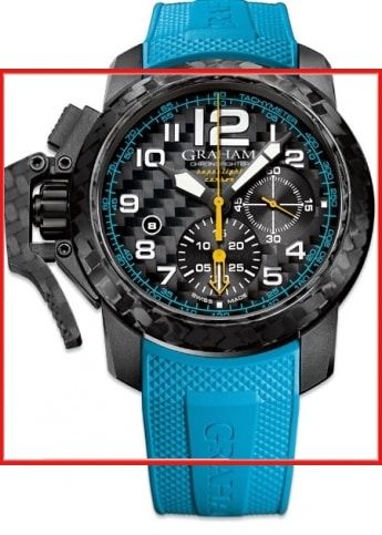 Das Zifferblatt hat Farbe Blau, Farbe Schwarz, Karbon und die Luenette ist Karbon. Diese Herrenuhr kommt mit einem 25 Rubine, Gangreserve 48 Std., Halbschwingungen A/h 28800, Incabloc Stosssicherung, Mechanisch mit automatischem Aufzug, Graham Kaliber G1747, automatic chronograph Werk. Das Kautschukband, Blau Armband vervollständigt das Bild dieser Herren Uhr. Die Funktionen dieser Luxus Herren Uhr umfassen Chronographe, Datum, Stunden Minute. Mehr Herren Uhren finden Sie in der Herren Kategorie.