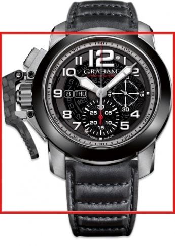 Das Zifferblatt hat Farbe Schwarz und die Luenette ist Edelstahl. Diese Herrenuhr kommt mit einem 25 Rubine, Gangreserve 48 Std., Halbschwingungen A/h 28800, Incabloc Stosssicherung, Mechanisch mit automatischem Aufzug, Graham Kaliber G1747, automatic chronograph Werk. Das Kalbsleder, Textilband, Schwarz Armband vervollständigt das Bild dieser Herren Uhr. Die Funktionen dieser Luxus Herren Uhr umfassen Chronographe, Datum, Stunden Minute. Mehr Herren Uhren finden Sie in der Herren Kategorie.