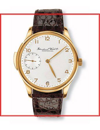 Das Zifferblatt hat silvered, domed, embossed golden arabic numerals and recessed minute track, leaf style hands und die Luenette ist . Das Werk ist mechanical with manual winding, IWC caliber 95290, 54 jewels, 18.00 vps., power-reserve about 43 hours.