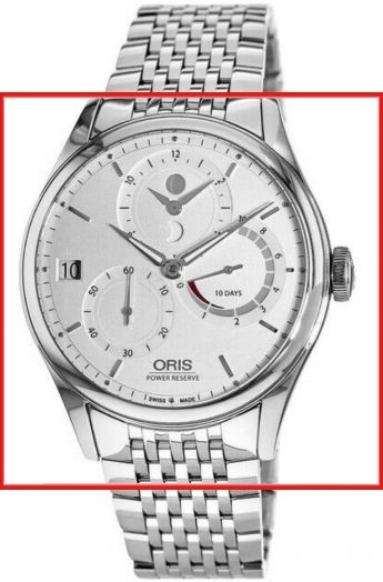 Das Zifferblatt hat Farbe Silber, Guillochiert, Indexe und Zeiger mit superluminova, Zeiger 18 kt Weissgold und die Luenette ist Edelstahl, Poliert. Das Werk ist 40 Rubine, Gangreserve 240 Std., Halbschwingungen A/h 21600, Mechanisch mit automatischem Aufzug, Oris 112.