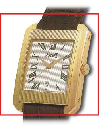 Das Zifferblatt hat silvered with ligné pattern, black printed roman numerals, faceted gold hands und die Luenette ist bezel decorated with ligné pattern. Das Werk ist mechanical with self-winding, caliber 500P, 40-hour power reserve, 26 jewels, 21, 600 vph..