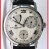 Das Zifferblatt hat versilbert, guillochiert, aufgesetzte römische Ziffern und Blattzeiger in Gold und die Luenette ist . Das Werk ist mechanisch mit automatischem Aufzug, Vacheron Constantin Kaliber 1127, 45 Lagersteine, 28.800 A/h, Gangreserve ca. 38 Stunden, Werk fein finissiert mit Genfer Streifenschliff.